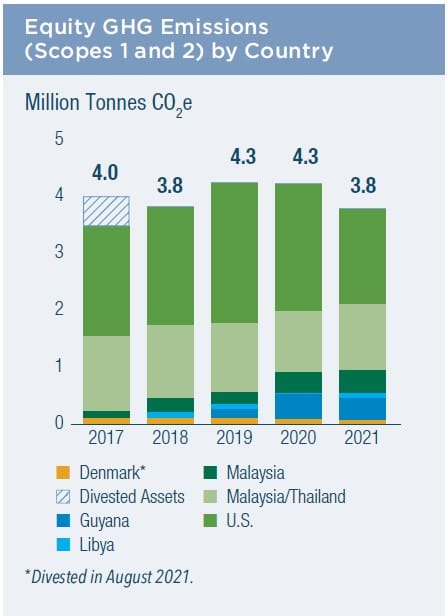 - Hess: hold a decent producing position in the North Malay basin through two Peninsular Malaysia blocks plus a block in the MTJDA held by the Carigali Hess JV. Rumours have swirled around Hess potentially divesting from these assets for a number of years but this has always been denied by Hess. One driver of a potential divestment would be ESG pressures as these assets, in particular the MTJDA asset, contribute significantly towards Hess’ equity Scope 1 and 2 emissions. The potential buyer pool for these assets looks limited to either PETRONAS Carigali or PTTEP.