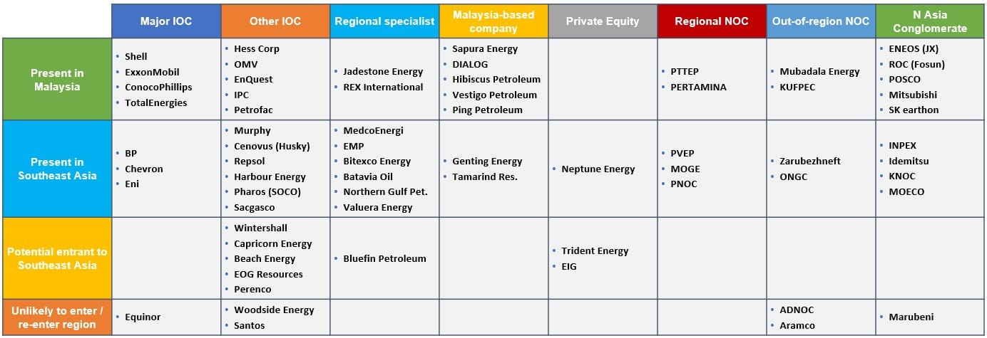 - Jadestone Energy: have a clear regional growth strategy and entered Malaysia in 2021 when they acquired SapuraOMV’s Peninsular Malaysia assets. Their current acquisition focus in the region is likely to be on gas assets with near-term production potential. However, the scale of these acquisitions will likely be limited.