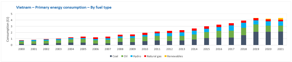 Vietnam has become the 9th largest coal consumer globally and has moved from a net coal exporter to a country that now imports about 50% of its coal.