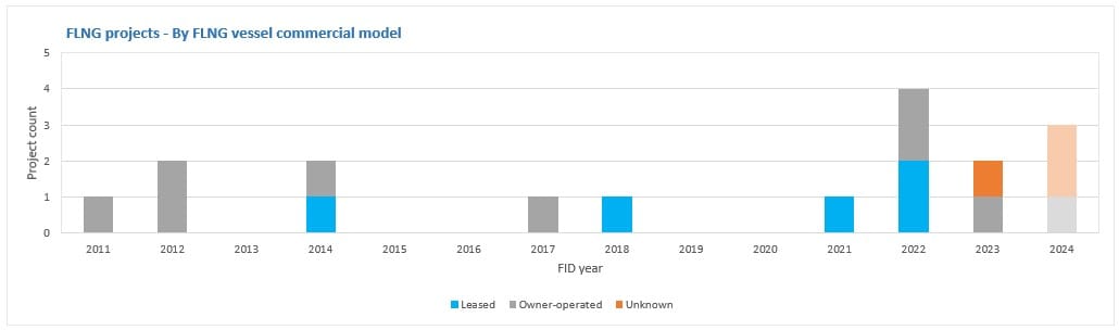 As per the FPSO market, the operator has the choice to look at owning or leasing the FLNG vessel. However, the number of companies offering a lease is limited with only Golar and NFE currently active in this space.