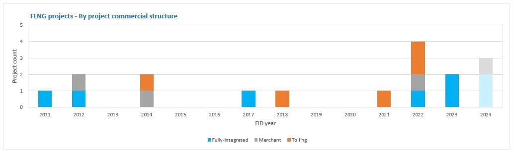 - Merchant: the upstream and liquefaction facilities are owned by different parties, with the upstream project selling the gas to the liquefaction project, then the liquefaction project earning revenue from selling the LNG.