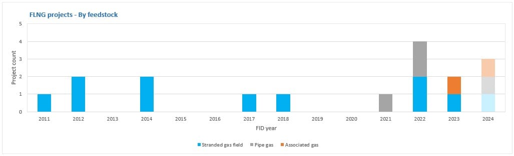 - Stranded gas field: The first was to monetise a stranded gas field (or a combination of gas fields) with sufficient resources to underpin a traditional onshore LNG liquefaction development. However, an onshore plant wasn't feasible, either because the economics didn't work due to the field being too remote, or bringing gas to shore was considered too risky.