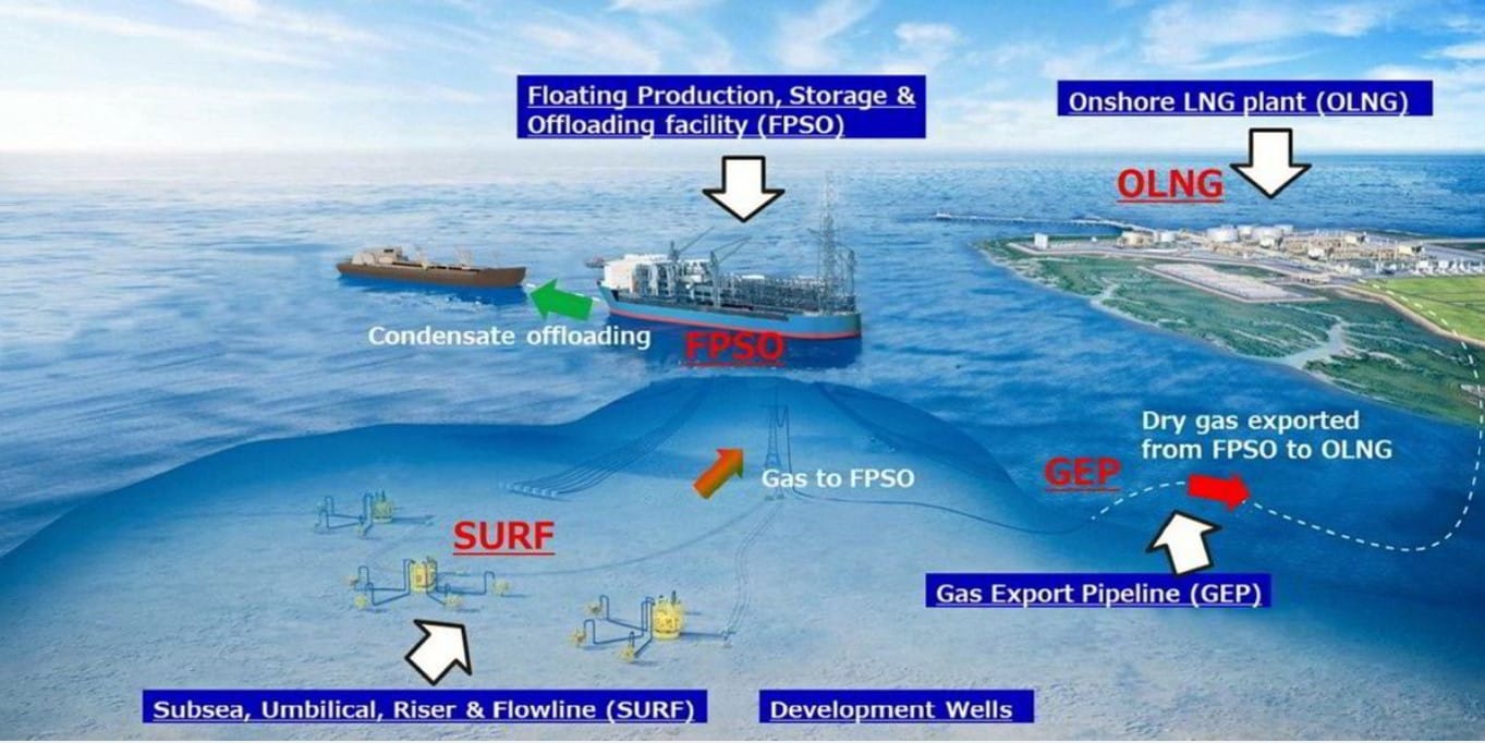 The upstream part of the project would likely need to remain as per the 2019 plan (with the addition of CCS) which would allow the FLNG vessel to be designed to handle processed gas (rather than raw gas), the vessel would be located offshore (at the field) and could either deploy a single train based on a baseload process or multiple trains of a smaller-scale process.