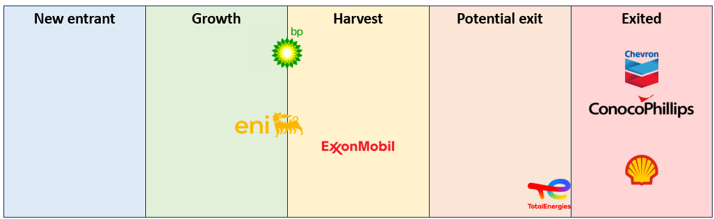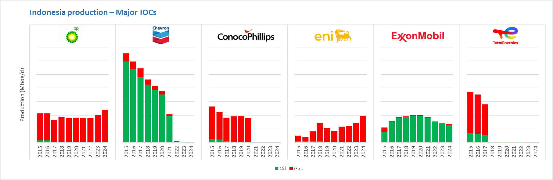 The recent majors to exit the upstream space in Indonesia are ConocoPhillips (exit in 2021), Shell (2023), and Chevron (2023). I see it as very unlikely that any of the companies would re-enter although Chevron have been active in the geothermal space.
