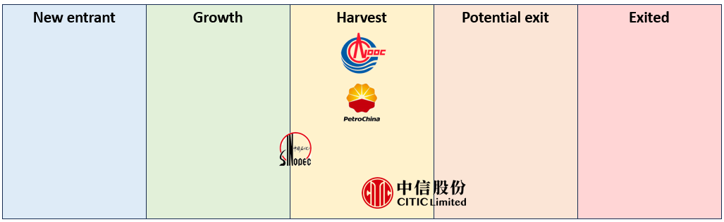 - PetroChina: having been granted an extension at their operated Jabung PSC, however they also lost a number of their smaller PSCs at their expiry. The also operate the nearby Bangko PSC, with their other remaining stakes come through their ownership of SPC, with the PSCs being Sampang (40%) and Kakap (15%). As per CNOOC, I don't see them having any real growth ambitions in Indonesia at this time, but neither a desire to exit.