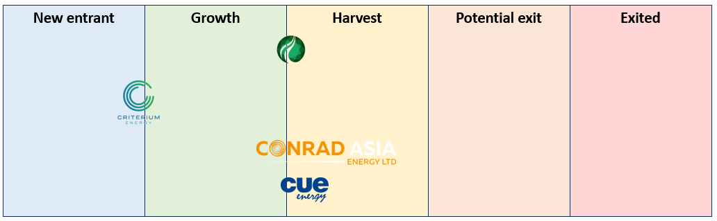 - Conrad Asia Energy: after a big 2022, this year has proved more challenging for Conrad. They had been hoping to take FID on their Mako gas field developments but this seems to have hit some hurdles around the GSA and third-party pipeline access. I hope things turn around for them in 2024.