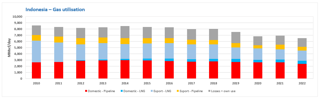 - Exports - Pipeline: in February 2020, the Indonesian government announced that gas exports from Sumatra to Singapore would be stopped at the end of the (then) current contract in August 2023, with the gas being sold into the domestic market instead. I understand that this announcement was a key driver for ConocoPhillips sale of the Corridor PSC to MedcoEnergi. However, in November 2022, the Indonesian government signed a new five-year extension to the export contract.