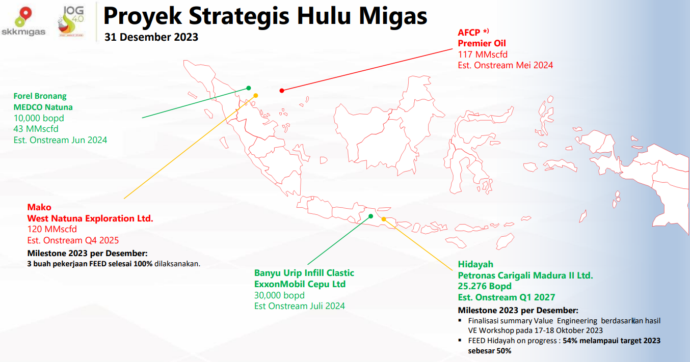 In addition, they identified five strategic oil and gas projects: AFCP, Banyu Urip Infill Clastic, Forel Bronang, Mako, and Hidayah.