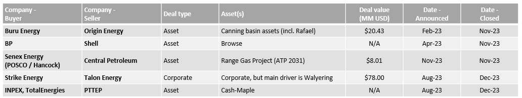 In addition to the Senex / Central deal above, four further deals closed in Q4:
