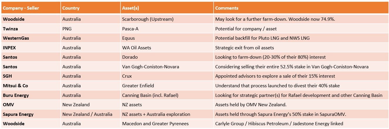 - I have added the ongoing Woodside sales process for the sale of the Macedon and Pyrenees assets. I missed this back in August.