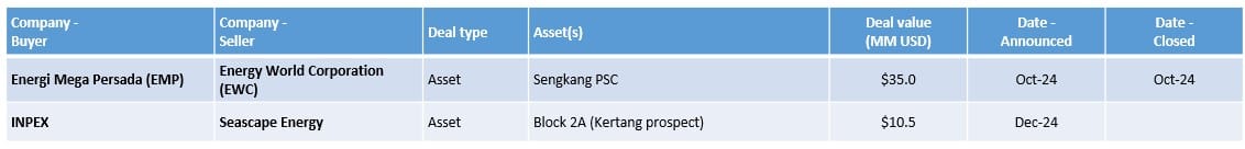 - The next deal came in late-August 2024 and saw Hibiscus Petroleum announce a deal for them to take a 30% stake in the PM-327 exploration block from PETRONAS Carigali. The deal is subject to normal approvals.