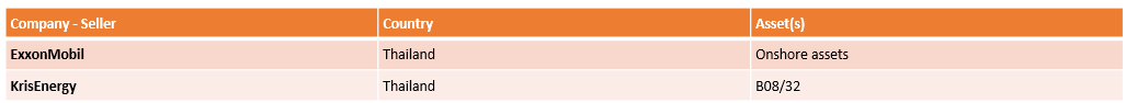 - MedcoEnergi: divested their onshore Thailand assets to Jadestone Energy in January. This leaves them with Block B08/38 (Bualuang), in which they hold a 100% interest. They could look to farm-down some of their interest here, or divest fully if the price is right. There is a lingering issue with the expiry of the concession in 2025.