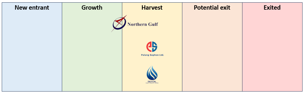 - Palang Sophon: exited G10/48 (Wassana) this year, with their 11% stake going to Valeura. This leaves them with a 10% stake in Block G11/48 (Nong Yao) and a 2% stake in Block B08/32 (Benchamas). There is not a lot of information on the company but I don't expect them to have growth ambitions.